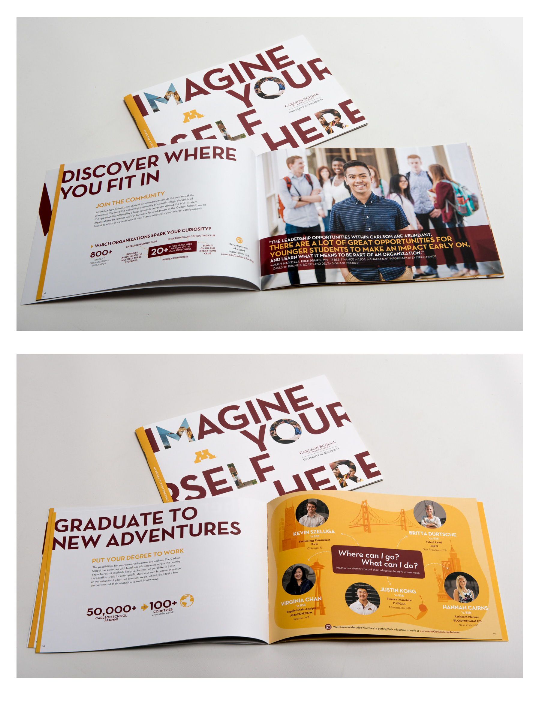 design for Carlson School of Management viewbooks and Discovery at Carlson materials.